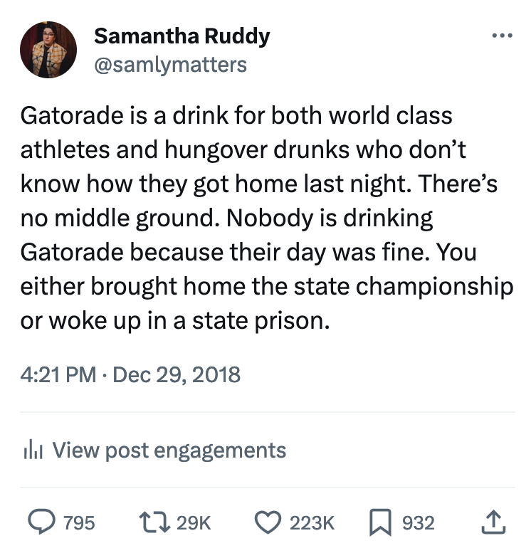 I’m a strategist, copywriter, and content creator who has made some pretty stellar content for brands ranging from TV commercials to viral social posts. I’ve worked at big agencies, small agencies, and even late night comedy shows. I’ve created content for iconic companies like Subway, Sony, and Captain Morgan. With 7 years of industry experience, I specialize in establishing a clear tone of voice for brands. Before agency life, I spent 3 years as an in-house social producer and copywriter on the Emmy Award-winning social team at Full Frontal with Samantha Bee under the Time Warner umbrella. My copywriting on the #MailedIt campaign earned the team a Clio award.As long as we’re talking about awards, my personal social media accounts were nominated for a Shorty Award in the Comedy category. Oh, and when I’m not tinkering with content, I’m also a standup comedian who has performed on both The Tonight Show and The Late Show. My mother told me to make sure I mentioned this. Cheers!A handy link to my resume!